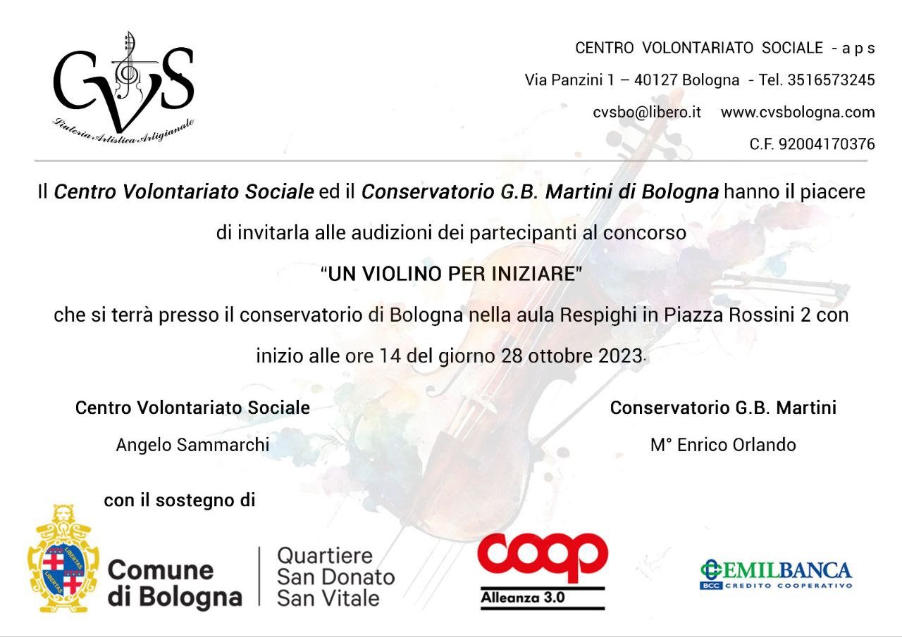 Promosso assieme al Conservatorio di Musica “G.B. Martini” di Bologna, il concorso è indirizzato a giovani violinisti/e desiderosi/e di proseguire il percorso di studi ed intraprendere una carriera professionale che non abbiano compiuto il diciottesimo anno di età al momento della presentazione della domanda di partecipazione o comunque al 15/10/2023, data di chiusura del bando.
